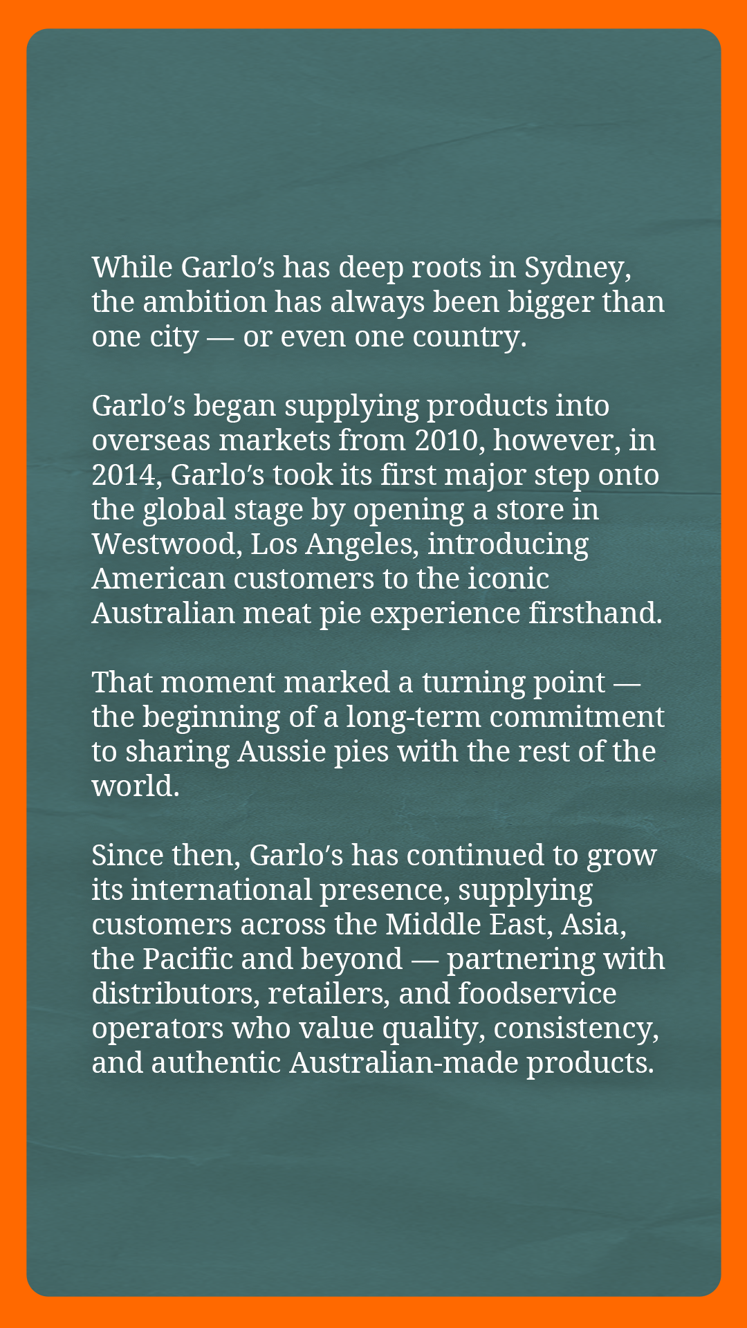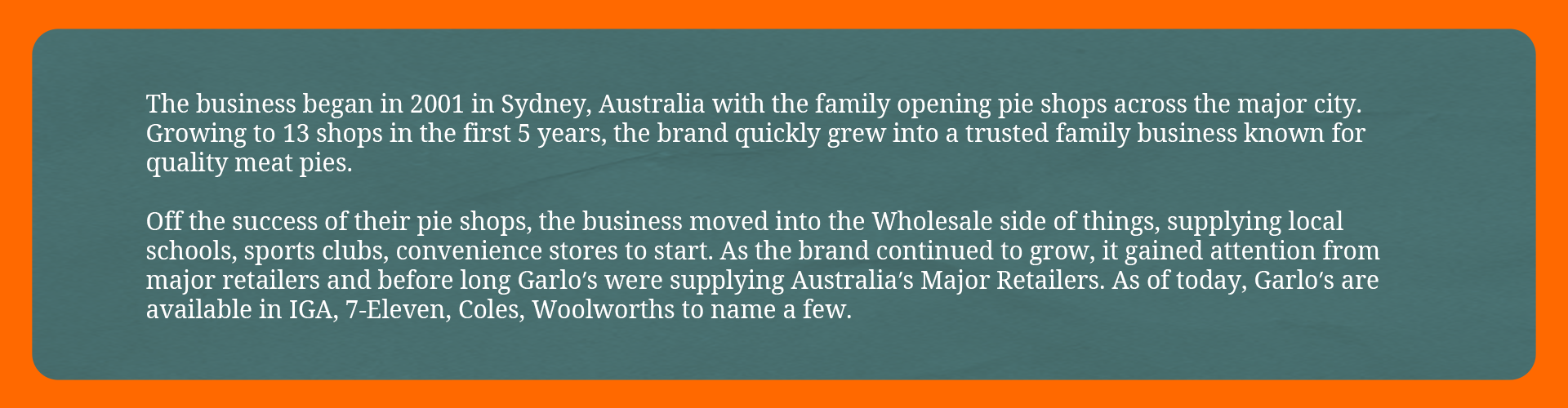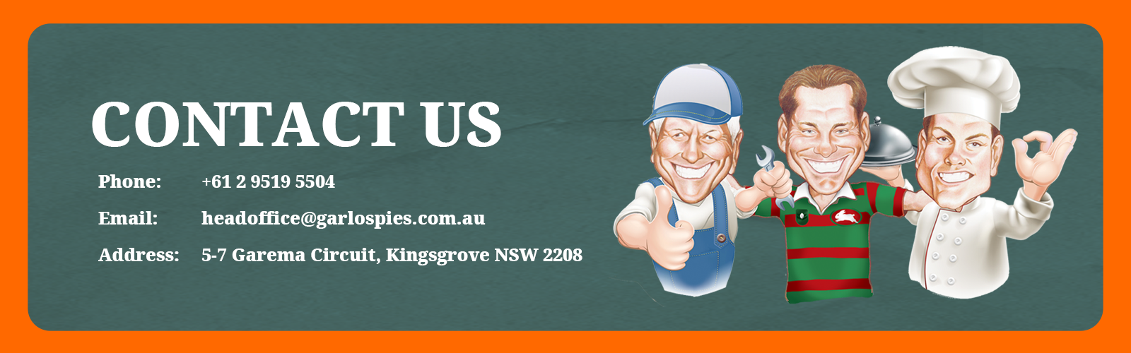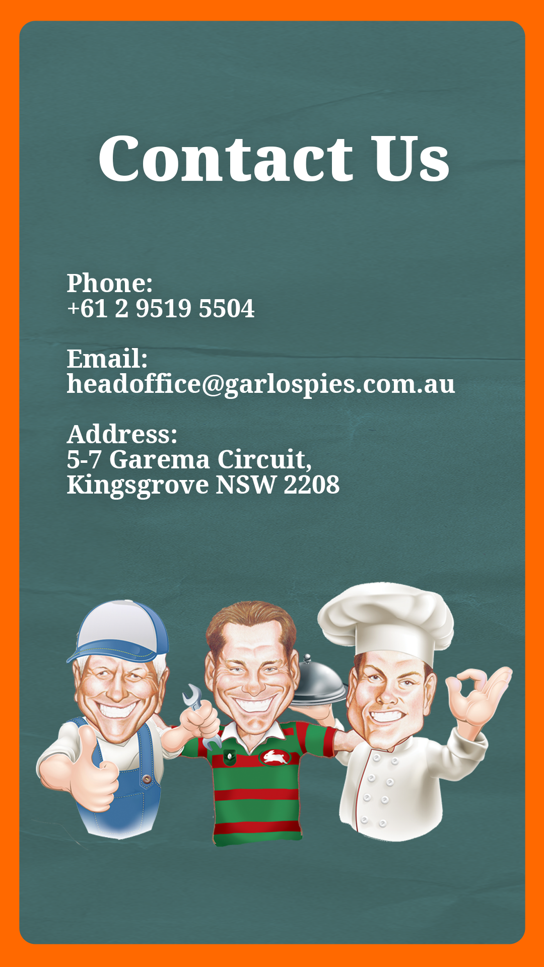 +61 2 9519 5504 | headoffice@garlospies.com.au | 5-7 Garema Circuit, Kingsgrove NSW 2208 | ABN: 30 095 033 971 | © Copyright Garlo's Pies Pty Ltd 2025