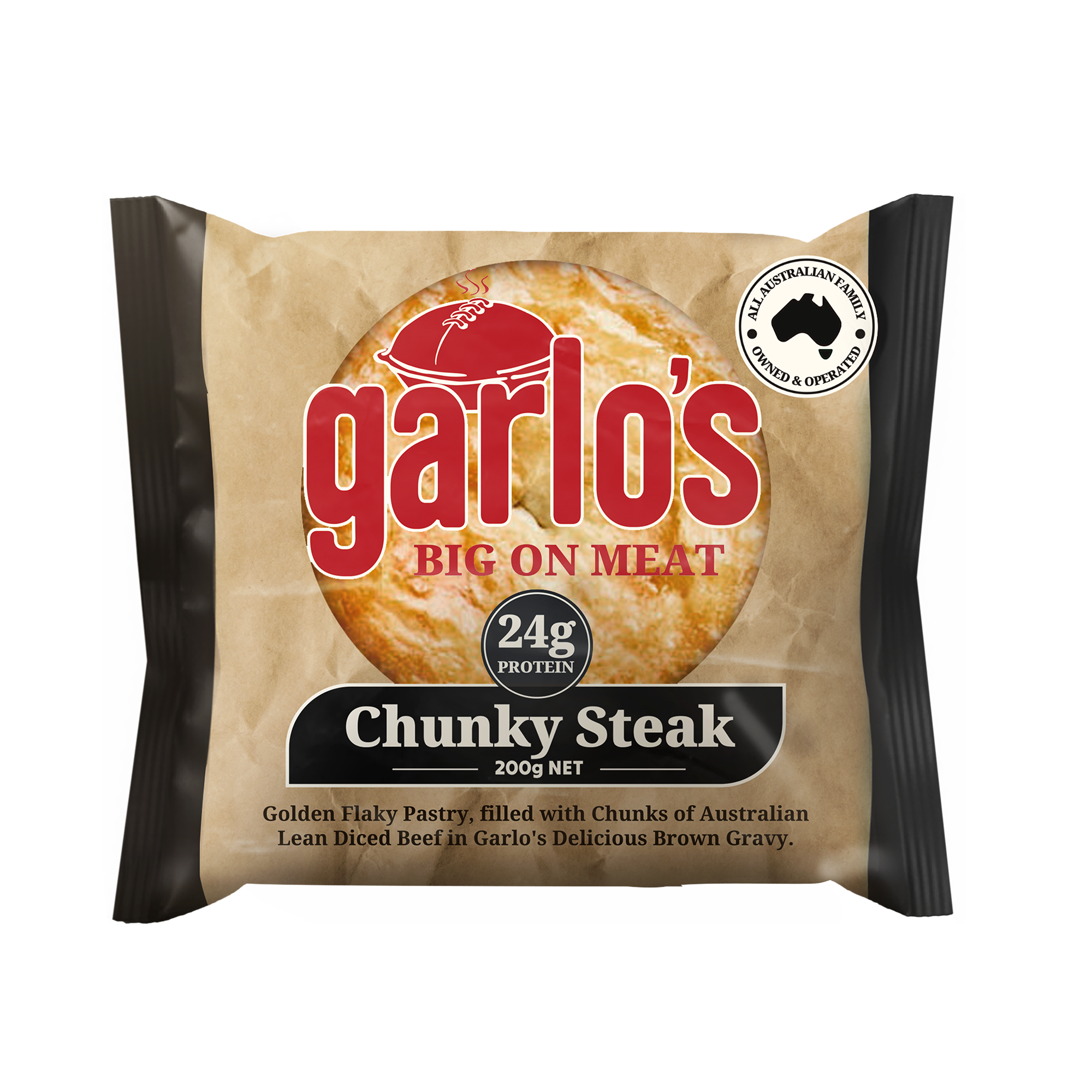 Filling (56%): Diced Beef (51%), Water, Thickener (1422), Textured Vegetable Protein [Defatted Soy Flour, Caramel Colour (150a)], Seasoning [Contains Caramel Colour (150c), Flavour (635)], Pepper.