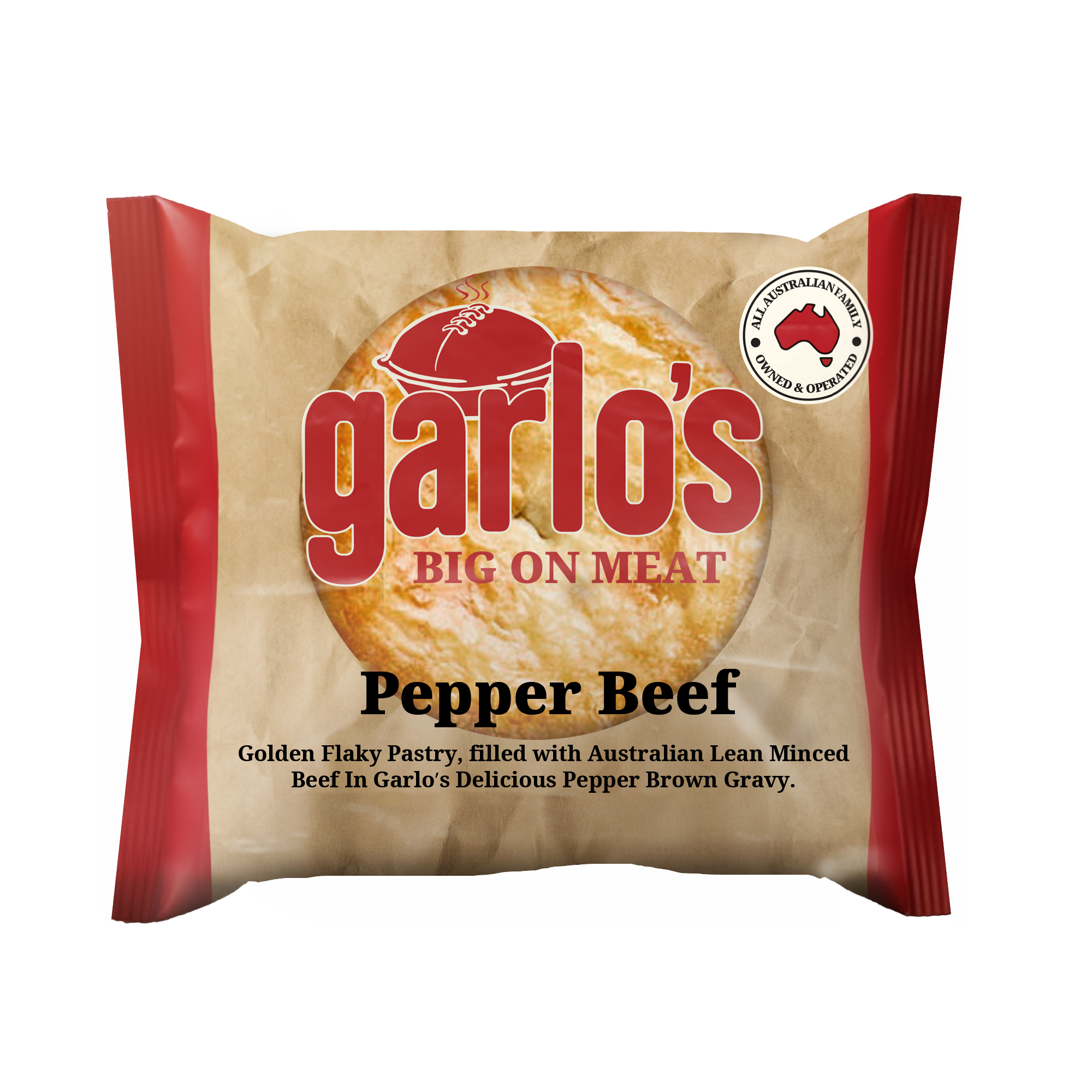 Golden Flaky Pastry, filled with Australian Lean Minced Beef In Garlo’s Delicious Pepper Brown Gravy.
