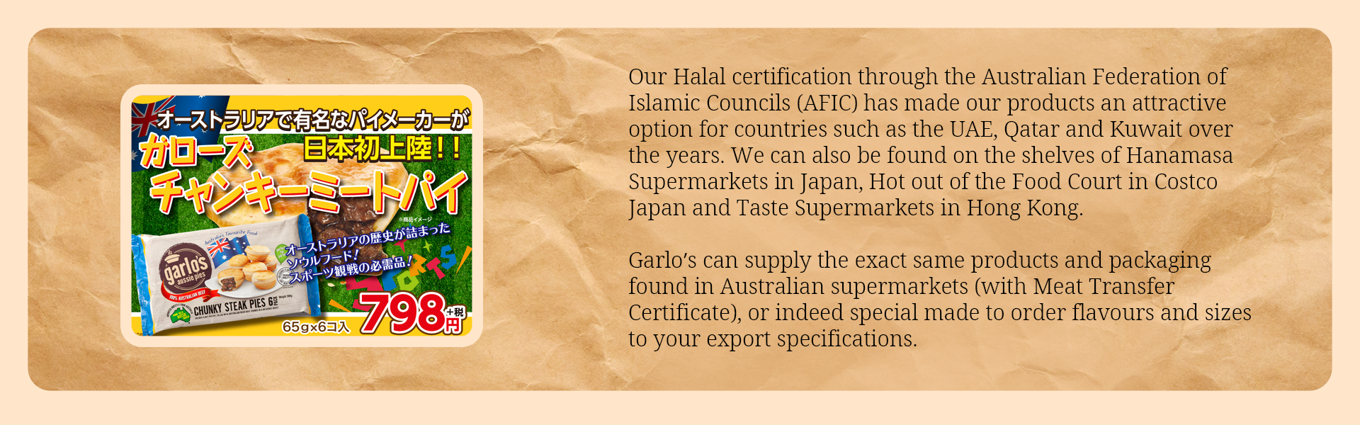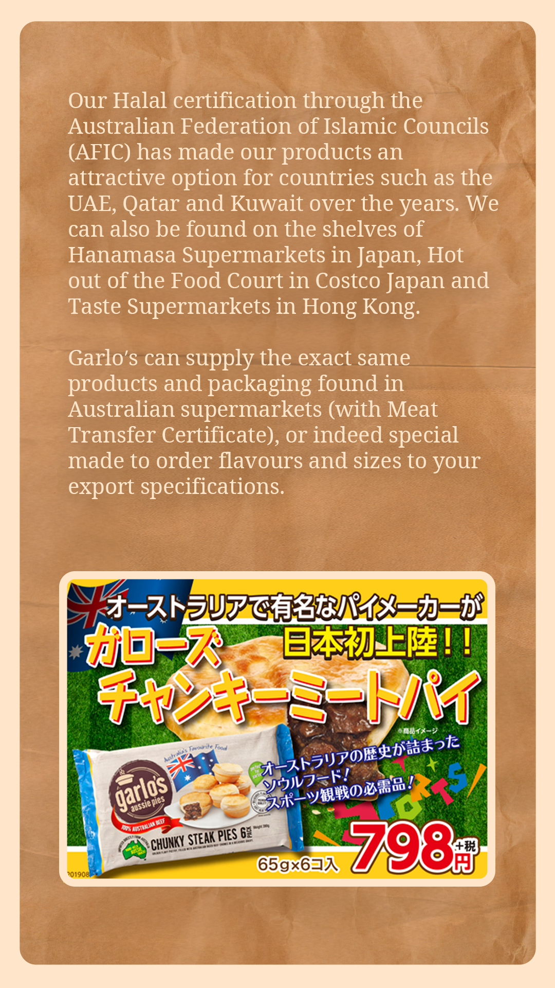 Not in the supermarkets at this stage. We have local distributors that supply to independent stockists.